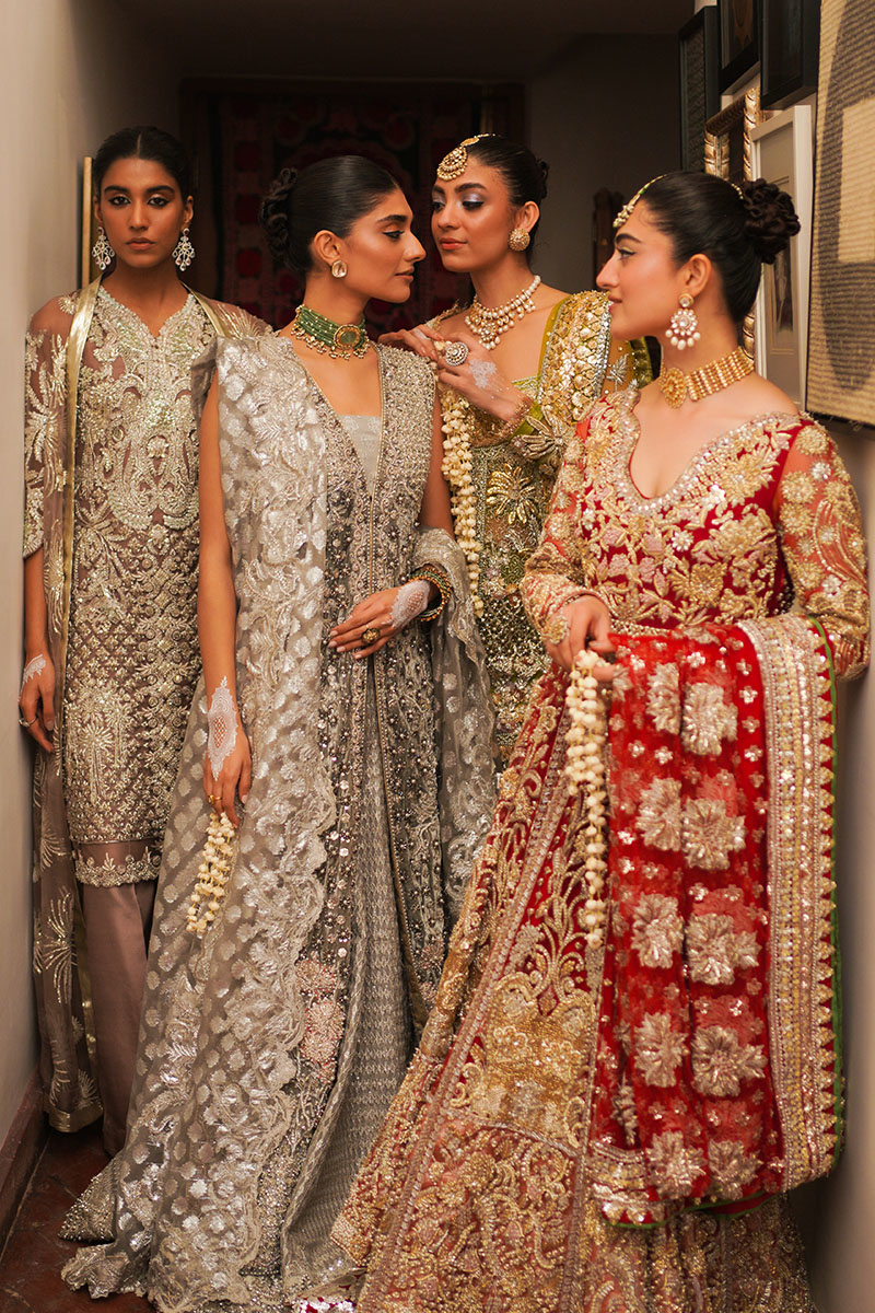 Embrace the regal splendour with our "Chaman" donned in the enchanting lilac gray hue. This stunning formal outfit comprises a meticulously hand-embellished shirt, featuring modern materials that include nakshi dabka, adding a contemporary touch to a classic design. The gown, crafted from delicate organza, is adorned with sequins embellishments, casting an ethereal charm. The shirt, made from sheer net, complements the ensemble with its elegant simplicity. Chaman is a perfect choice for those seeking a graceful and modern formal look, blending tradition with contemporary flair in a captivating lilac gray hue.