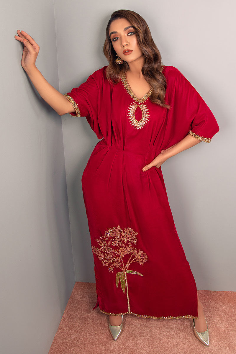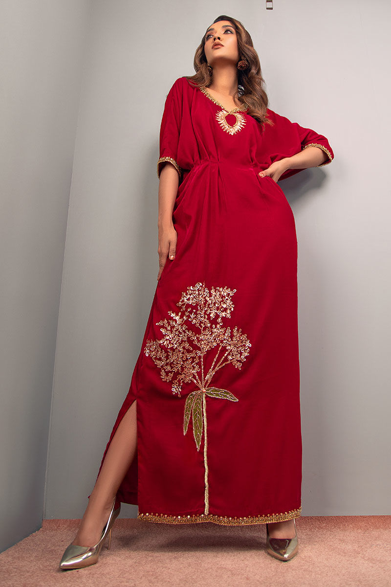 Fabric: Velvet Color: Cherry Red Work Details: Embellished