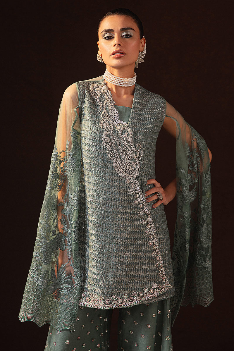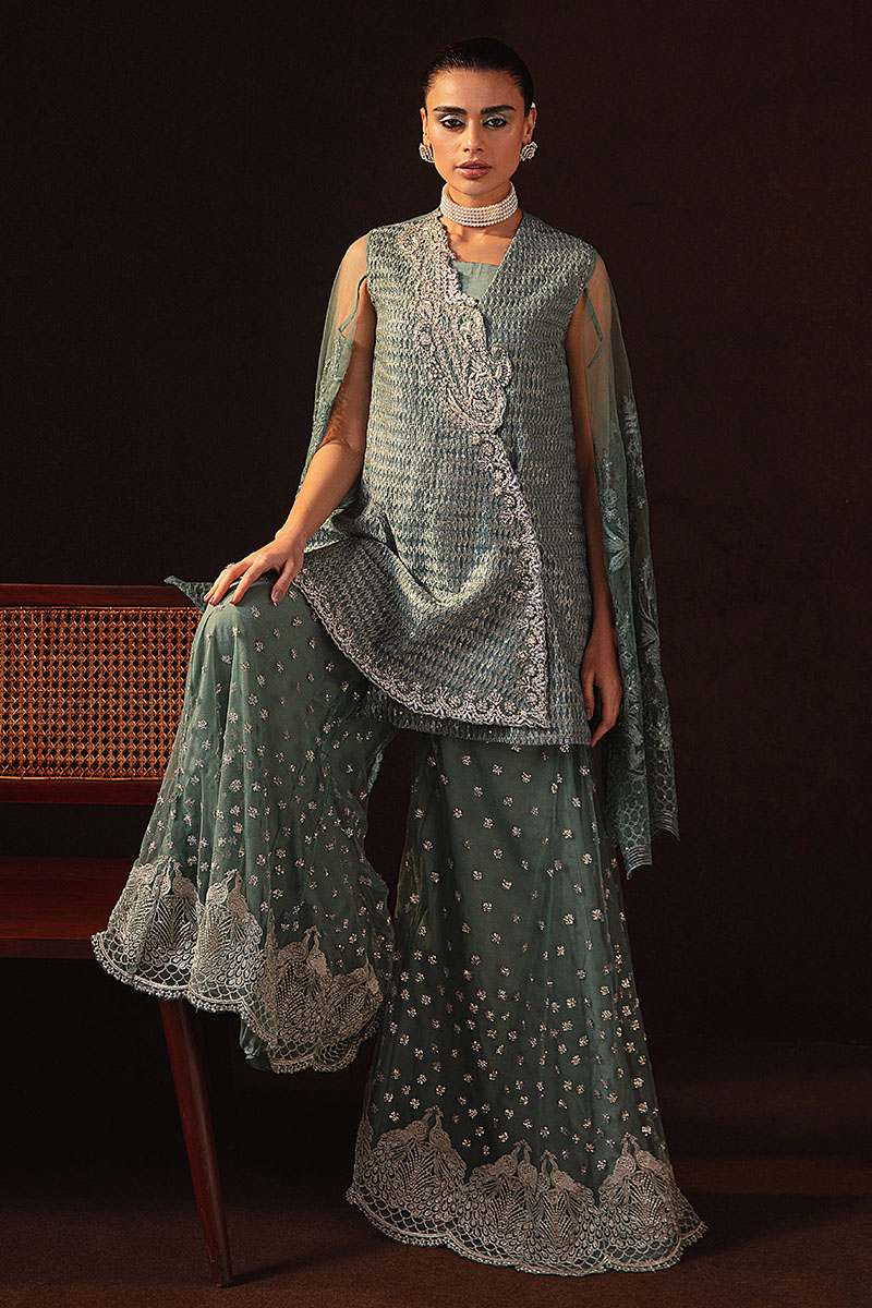 Fabric: Net Color: Grey Green Work Details: Embroidered and Embellished