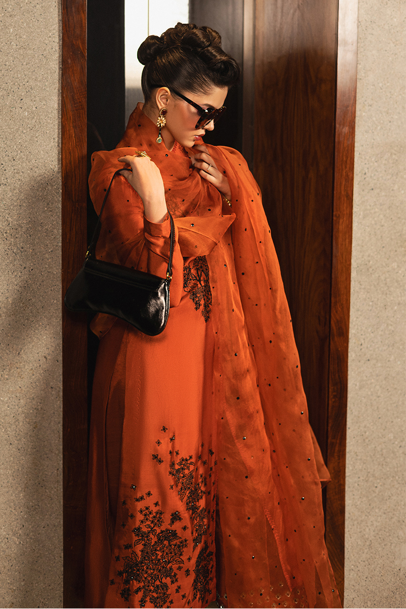 Lady Garden – A celebration of refined elegance and modern charm. This exquisite ensemble features a long, round-neck shirt adorned with intricately embroidered floral bunches, elevated by a delicate keyhole detail and playful dori tassels for added flair. The straight-fit culotte boasts a contrasting floral-embellished border, creating a perfect balance of subtle and striking details. Completing the look is a sheer organza dupatta, adorned with a sparkling sequin spray, adding just the right touch of luxury. Lady Garden is designed to exude sophistication and grace, making it the ideal choice for your statement-worthy moments.