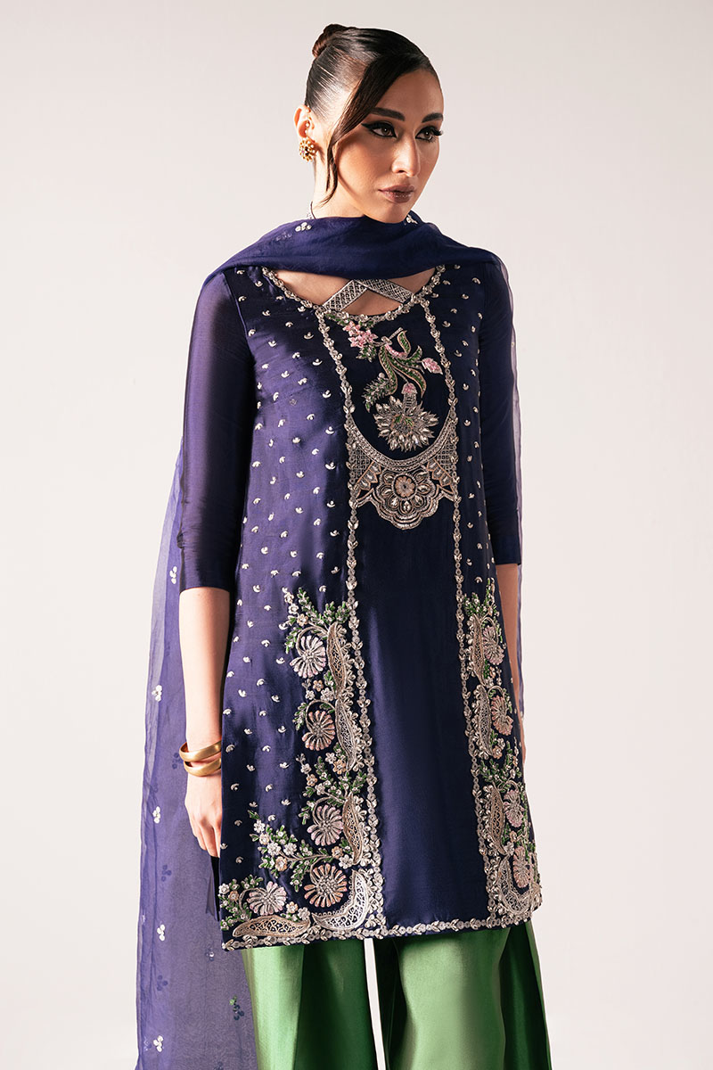 Fabric: Tissue Silk Color: Navy, Green Work Details: Embroidered and Embellished