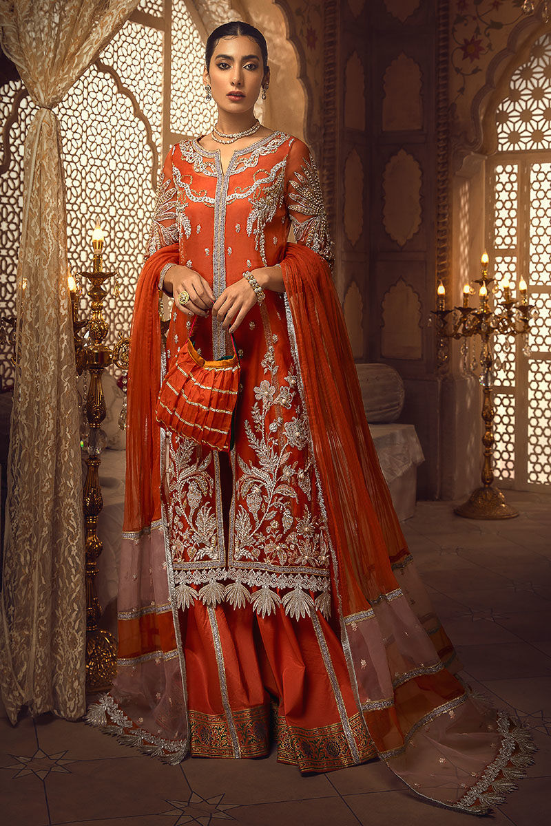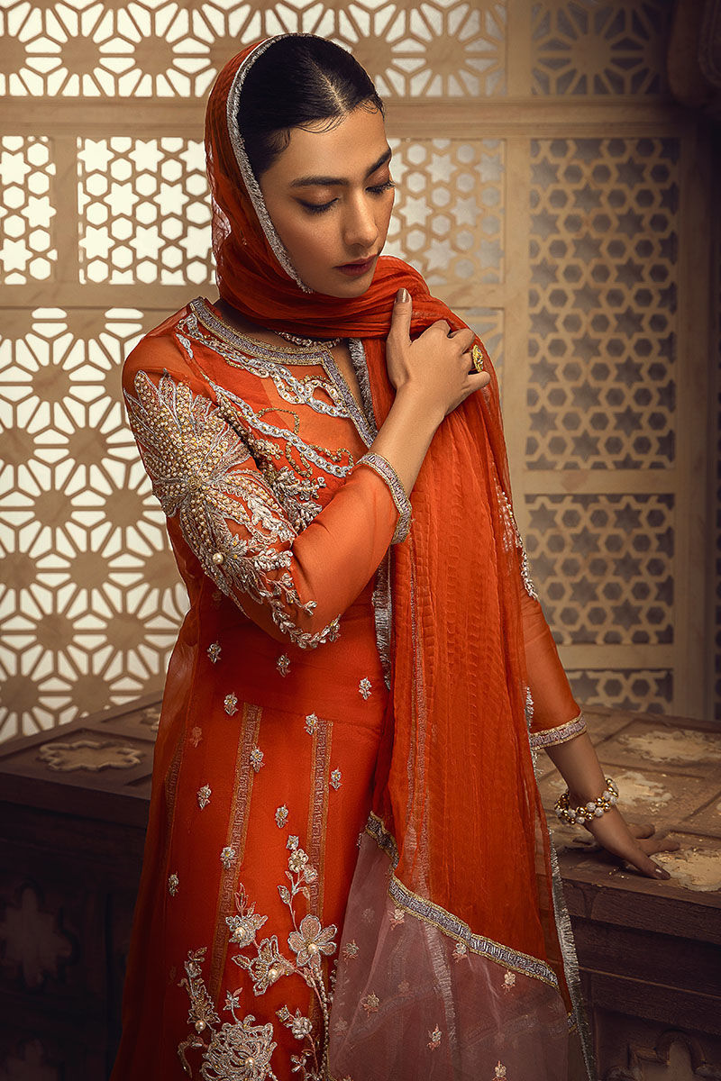 Fabric: Shirt: Organza Dupatta: Organza Trouser: Bamber raw silk Lining: Bamber raw silk
