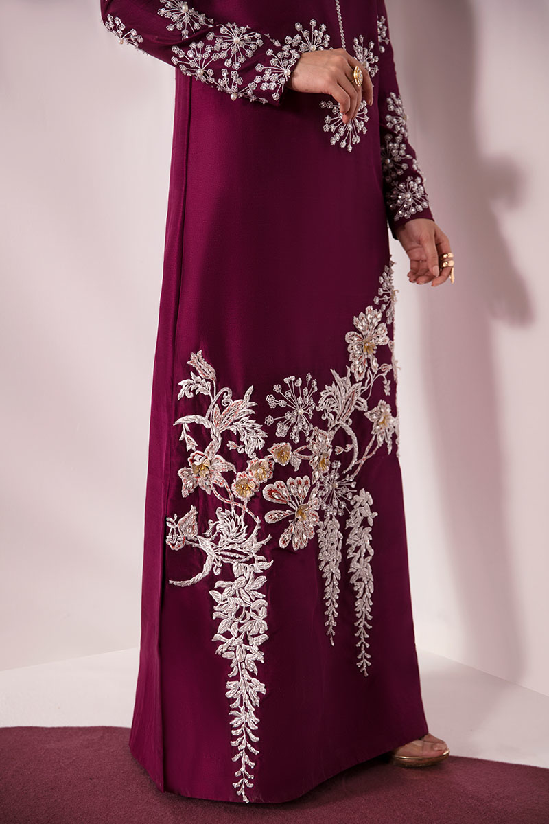 Fabric: Pure Raw Silk Color: Plum Maroon Work Details: Embellished and Embroidered