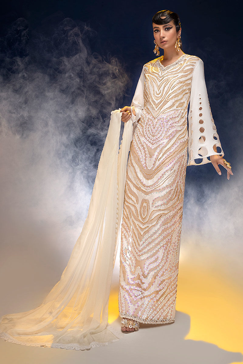Fabric: Pure Rawsilk And Organza With Chiffon Dupatta Color: White And Coffee Work Details: Embellished