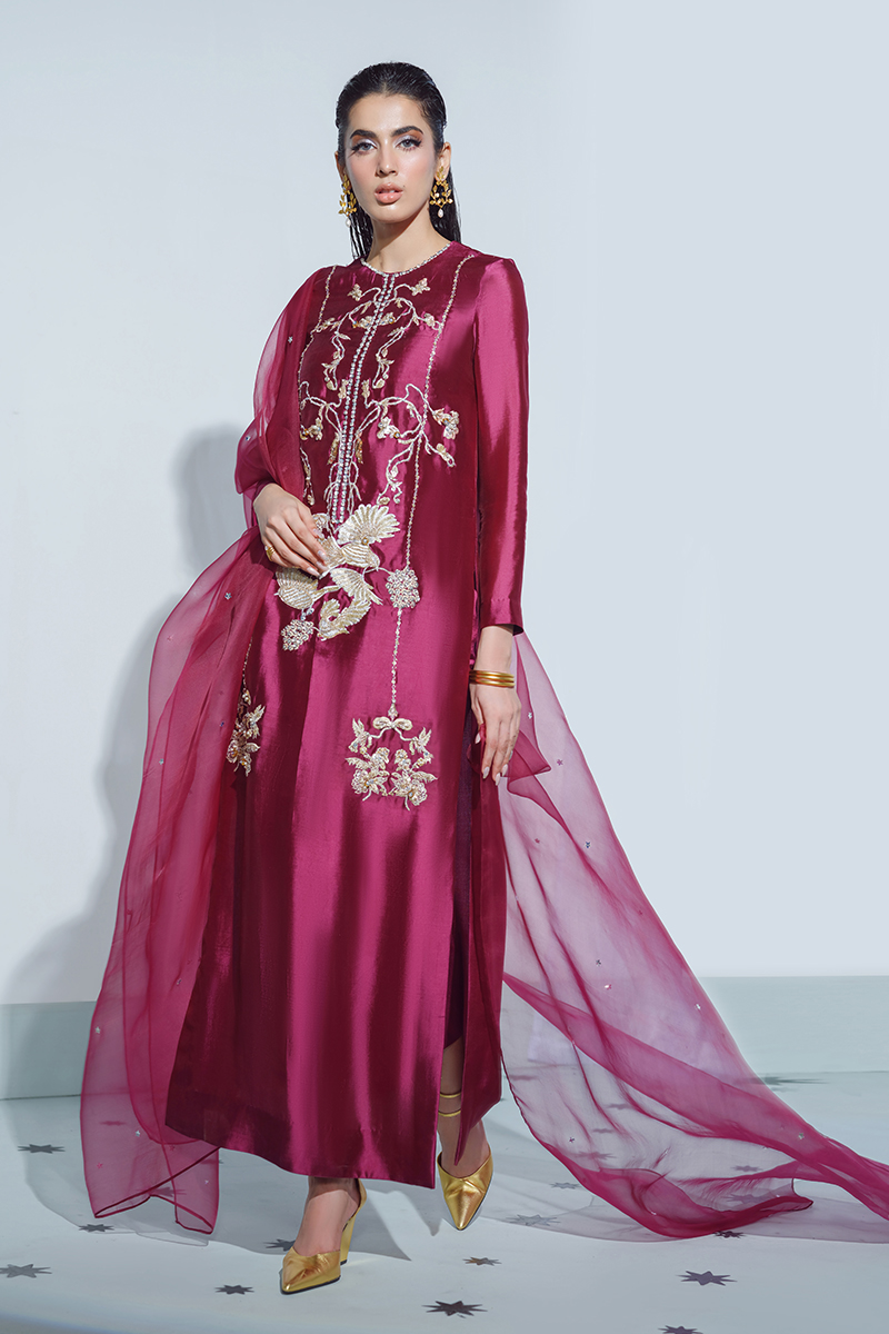 Fabric: Organza, Tissue Silk Color: Falsa Work Details: Embroidered and Embellished