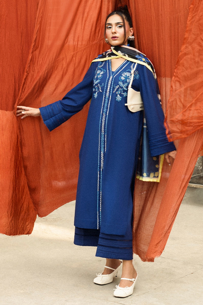 Fabric: Shirt (Lawn cotton) / Trouser (Lawn cotton) / Dupatta (silk) Color: Ink Blue Work Details: ⁠Embroidered